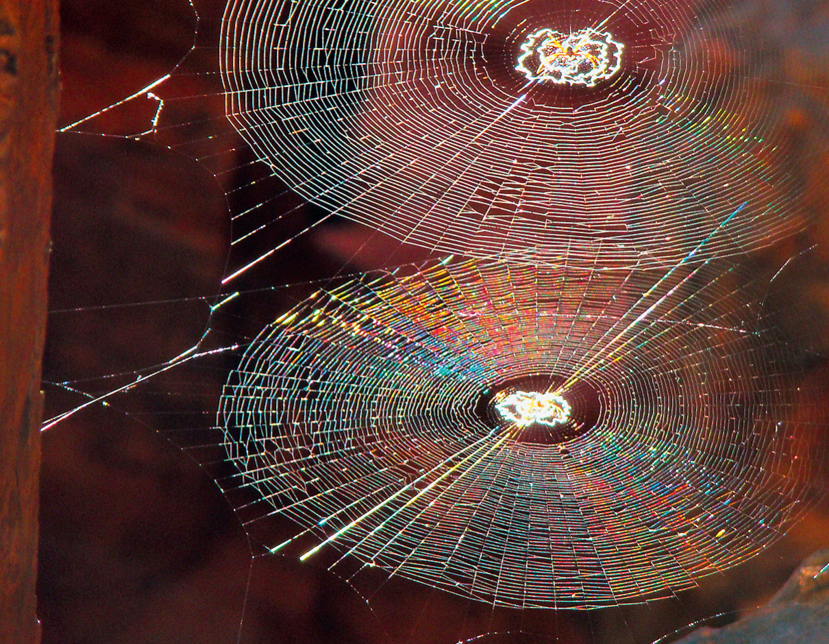 Уже несколько лет современные тонкие методы анализа ДНК и её фрагментов позволяют по пробам воды и донного грунта из моря определить, какие организмы здесь живут (см. «Наука и жизнь» № 10, 2020 г.). А недавно группа австралийских генетиков нашла новый источник ДНК на суше: это тенёта пауков (см. фото). На паутине остаются не только следы пойманных насекомых, но и всё, что принесёт ветер. Паучьи сети, собранные на территории зоопарка в городе Перт и в заповеднике (30 км от Перта), подвергли генетическому анализу, определяя принадлежность фрагментов экологической, то есть рассеянной в природе ДНК, прилипших к паутине. В зоопарке выявленные виды варьируют в размерах от карликовой игрунки (эти обезьянки весят от 100 до 150 г) до носорогов, жирафов и слонов. В зоопарке на паутинах отметилось почти вдвое больше видов, чем на воле, в заповеднике — 61 вид против 32. Правда, авторы замечают, что «поимку» фрагментов ДНК было легче осуществить в зоопарке, так как там на небольшой площади сконцентрировано много видов. Разновидности паутины различались в зависимости от места сбора. В заповеднике преобладали простые круглые двумерные сети (см. фото), а в зоопарке было много сетей сложной формы, иногда почти комкообразной. Естественно, во всех пробах найдена также ДНК человека, но её не учитывали.