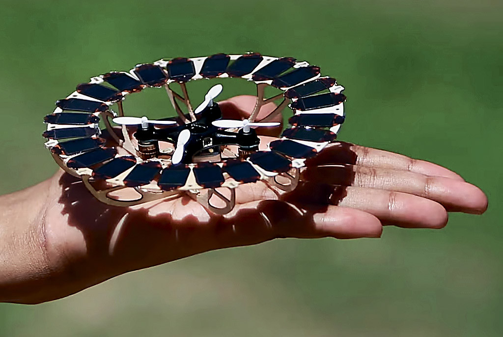 Он создан в университете Линца (Австрия). В солнечную погоду его 24 батареи (материал — перовскит), расположенные по кругу и составляющие всего 0,25% от веса устройства, выдают 250 милливатт. Немного, но это позволяет аппаратику держаться в воздухе около трёх минут, после чего требуется полтора часа зарядки. Практического значения микродрон не имеет, изготовлен он лишь для демонстрации перспектив батарей на перовските. Авторы надеются, что в дальнейшем смогут увеличить КПД и стабильность солнечного модуля.