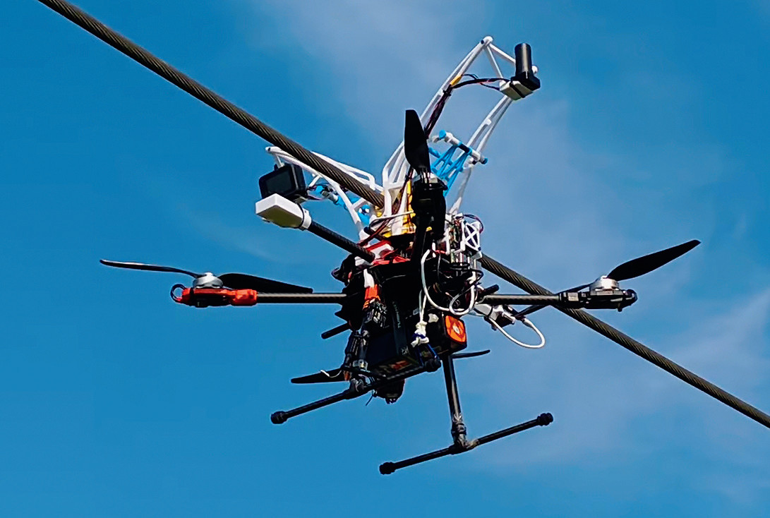 Время полёта дронов с электроприводом составляет, как правило, не более часа. Инженеры из Университета Южной Дании в городе Оденсе смонтировали из серийно выпускающихся деталей дрон, способный сесть на провод высоковольтной линии переменного тока и подзарядиться (см. фото). Аппарат, снабжённый системой поиска проводов под током, сам находит подходящую линию, закрепляется на проводе «когтями» и подзаряжается. Чем выше напряжение в проводе, тем быстрее идёт зарядка. Предполагают использовать такую систему для инспекции высоковольтных ЛЭП.