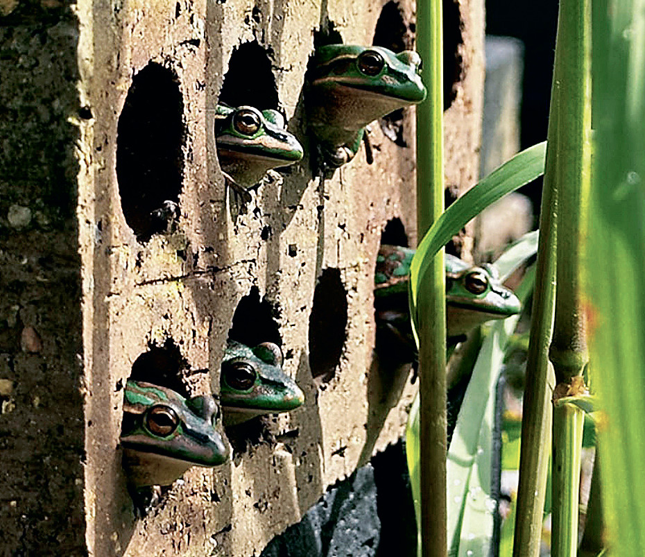 Редкий австралийский вид лягушек Litoria aurea находится на грани вымирания. из-за болезни, вызываемой паразитическим грибком Batrachochytrium dendrobatidis, численность этого и других видов лягушек сократилась за последние 30 лет во всём мире. Австралийские зоологи нашли способ лечения: грибок лучше всего растёт и размножается при 19°С, а более высокие температуры его убивают, тогда как тропическая лягушка от них не страдает. Биологи под руководством Эндрю Уоддла из университета Маккуори в Сиднее рассаживают больных лягушек в отверстия пустотелого кирпича (см. фото), да вдобавок закутывают кирпич в полиэтиленовую плёнку. Температура поднимается в солнечный день до 30°С, грибок гибнет, лягушки выздоравливают. Возникает иммунитет, повторные заражения бывают редко и переносятся легко. Для более массовых сеансов оздоровления используются чёрные пластиковые трубы.