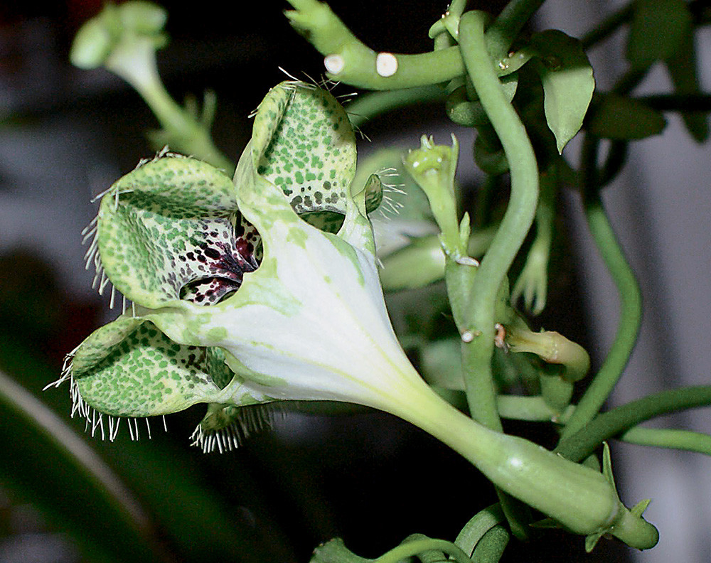 Церопегия относится к числу наиболее оригинальных комнатных растений из семейства Кутровые. И она пока ещё остаётся эксклюзивной культурой, знакомой не многим. Название происходит от греческого слова κηροπήγιος, что в переводе на русский означает «канделябр» — сходство цветков причудливой формы с этим предметом очевидно. В дикой природе церопегии представлены прямостоячими или лазающими многолетними растениями, многие из которых являются суккулентами.