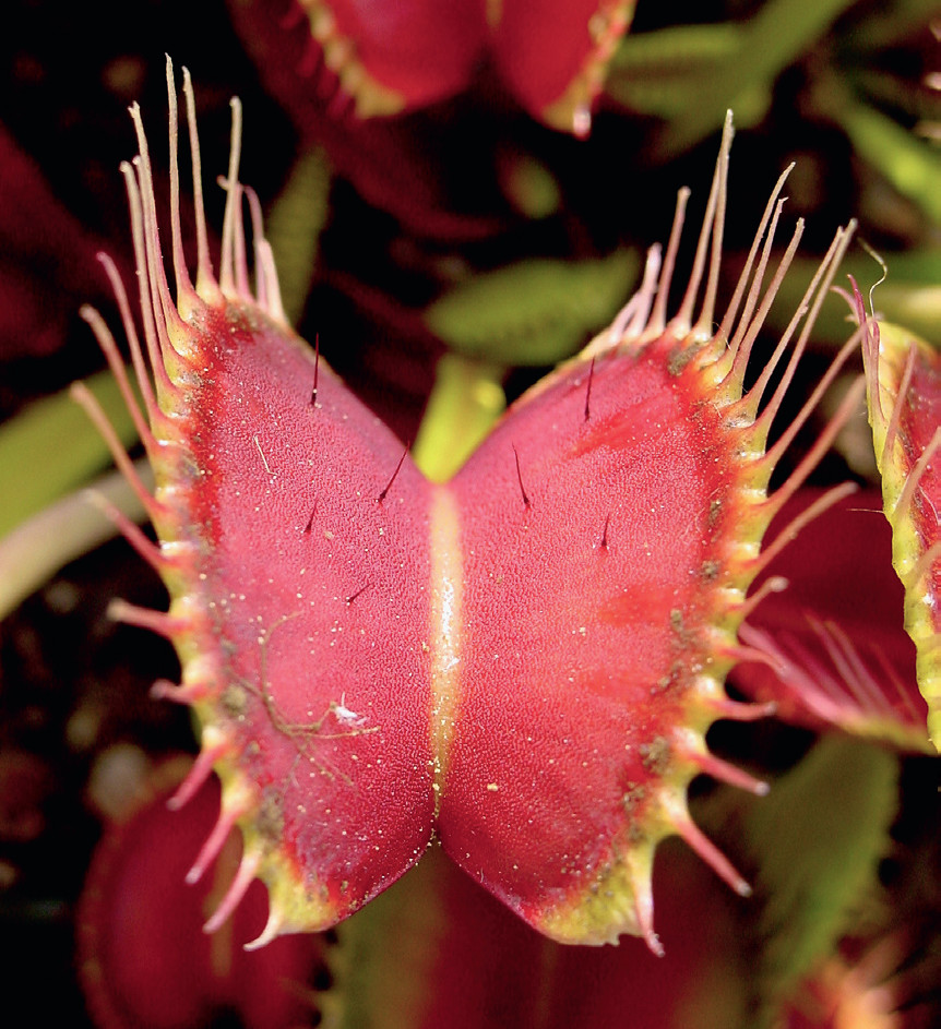 Однако на свете есть растения, которые могут двигаться не по-растительному быстро. Самые известные из них — венерина мухоловка и мимоза стыдливая. Венерина мухоловка — хищное растение, питающееся мелкими беспозвоночными. Насекомое, паук или какая-нибудь мокрица заползают в ловушку из листьев, которая выглядит как зубастая пасть. Мухоловка чувствует, что в ловушку кто-то попался, и захлопывает её — на это у неё уходят десятые доли секунды. Есть и другие плотоядные растения, способные к быстрым движениям: росянка и пузырчатка.