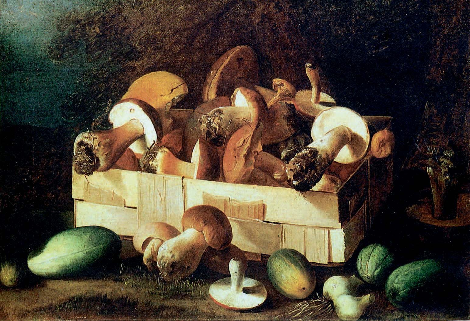 Горы гриба сушёного, всех сортов. Стоят водопойные корыта, плавает белый гриб, тёмный и красношляпный, в пятак и в блюдечко. Висят на жердях стенами. Шатаются парни, завешанные вязанками, пошумливают грибами, хлопают по доскам до звона: какая сушка! Завалены грибами сани, кули, корзины...»
