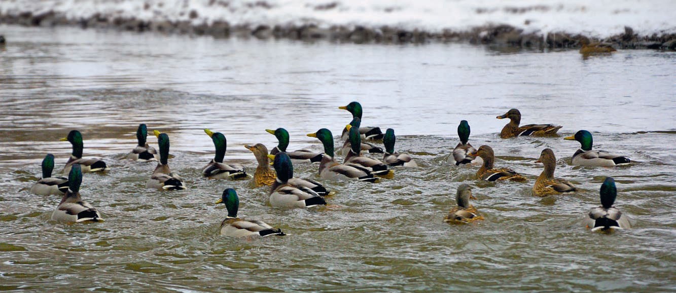 В каждом большом городе есть места, где зимуют дикие утки. Главное условие их существования, чтобы водоём не замерзал в самые лютые морозы. В Санкт-Петербурге, где я живу, одна из постоянных зимовок крякв находится недалеко от моего дома, в густонаселённом микрорайоне, рядом с оживлённой транспортной магистралью. Недалеко от домов протекает некое подобие ручья, где местами воды по колено, а местами и вовсе нет.