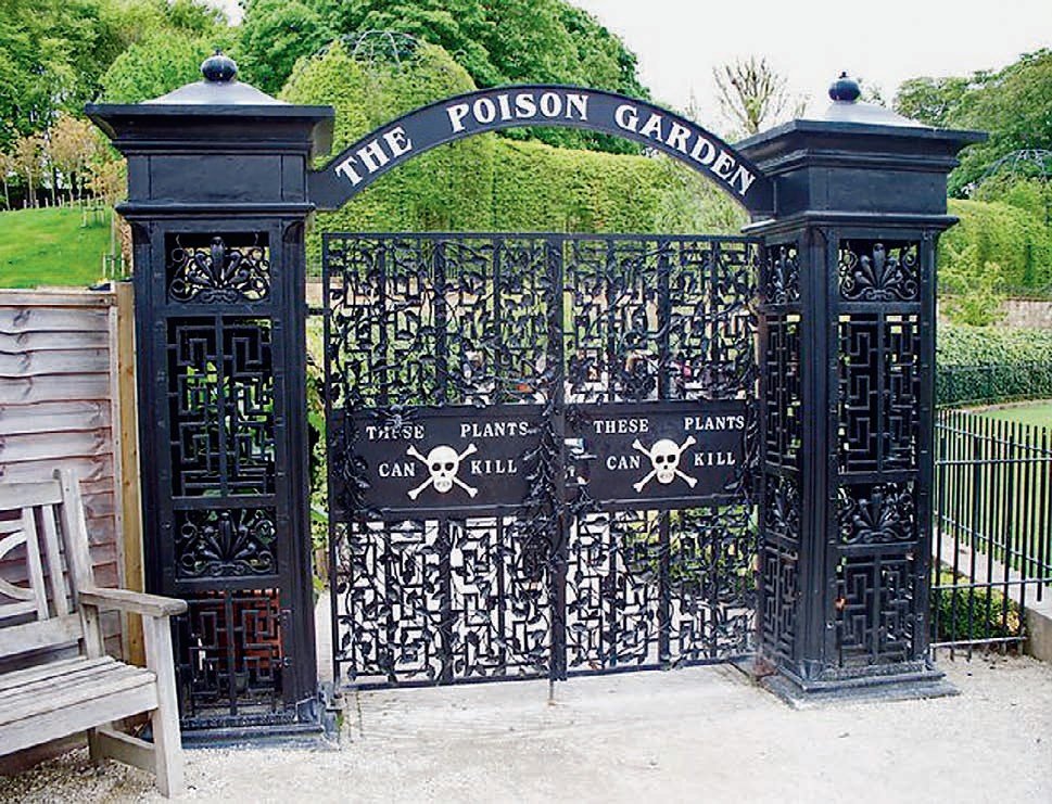 На севере Англии при старинном замке в графстве Нортумберленд работает ботанический сад, в котором имеется огороженный высоким забором отдел ядовитых растений (см. фото справа). Здесь представлены белена, дурман, сумах, белладонна и множество других ядовитых трав, кустарников и деревьев. Посетителей предупреждают не трогать растения и не нюхать их цветы.