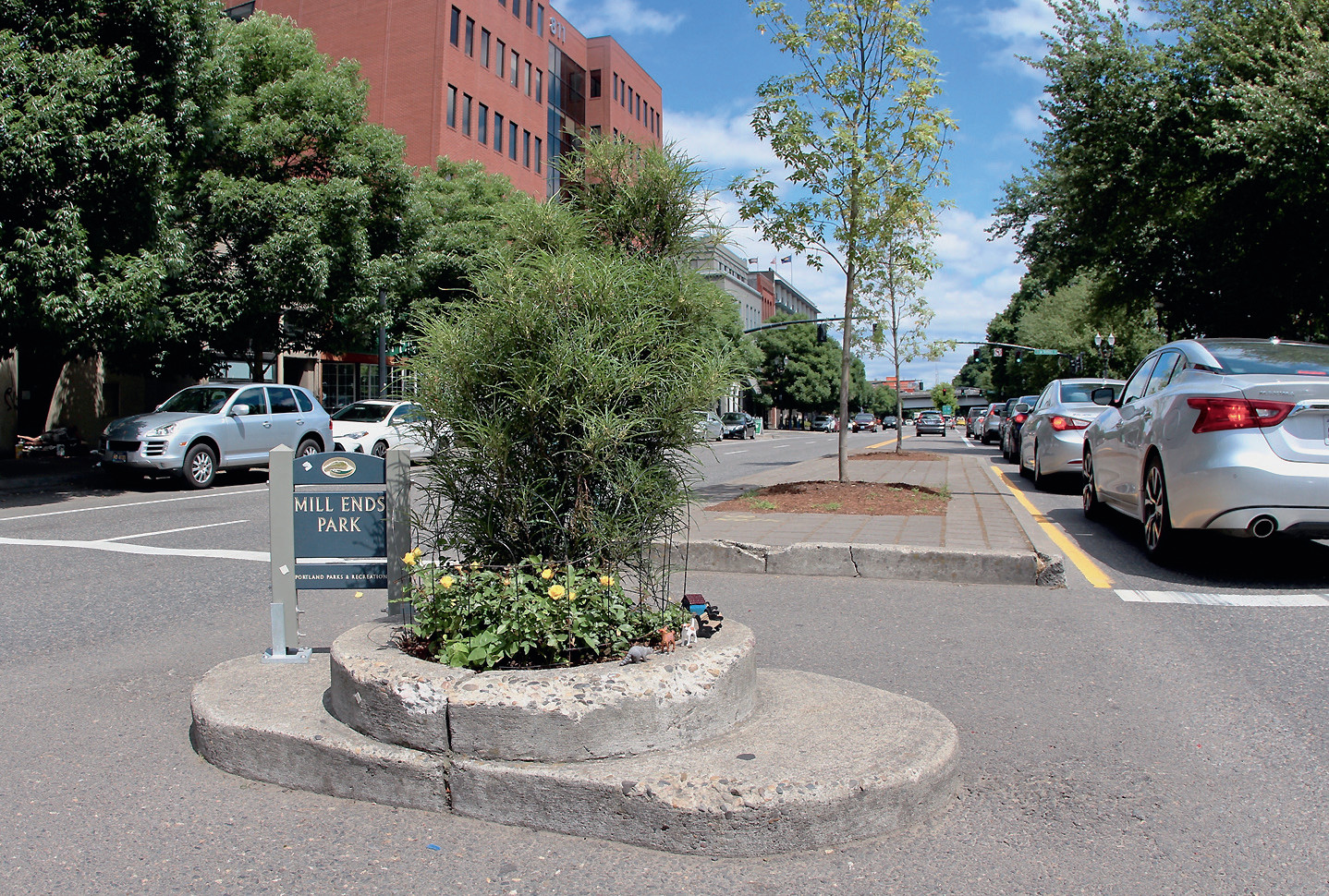 Самым маленьким парком мира долгое время считался кружок диаметром 61 см и площадью 0,292 м2 на пересечении двух улиц города Портленд (штат Орегон, США). «Парк», показанный на снимке, создал в 1948 году местный журналист, которому надоело смотреть из окна своего офиса на яму в центре перекрёстка двух улиц. Он посадил в отверстие дерево и цветы, сделал ограду и назвал это место парком. Но в настоящее время звание самого маленького парка перешло к созданному в японском городке Нагаидзуми на острове Хонсю (население 42 095 человек). Площадь миниатюрного парка составляет 0,24 м2.