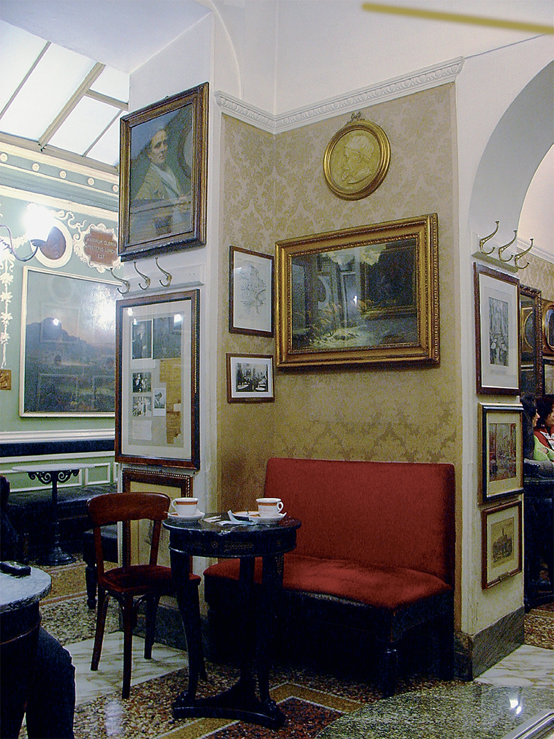 Самое древнее кафе Италии Antico Caffe Greco находится в Риме, оно открылось в 1760 году. Среди его знаменитых посетителей были Николай Васильевич Гоголь, Иоганн Вольфганг Гёте, Джордж Байрон, Гектор Берлиоз, Ханс Кристиан Андерсен, Эдвард Григ и многие другие. Недавно, однако, писали, что заведение находится под угрозой закрытия, так как цены на квадратный метр недвижимости в центре столицы, а с ними и налоги сильно выросли… На снимке — уютный уголок этого кафе.
