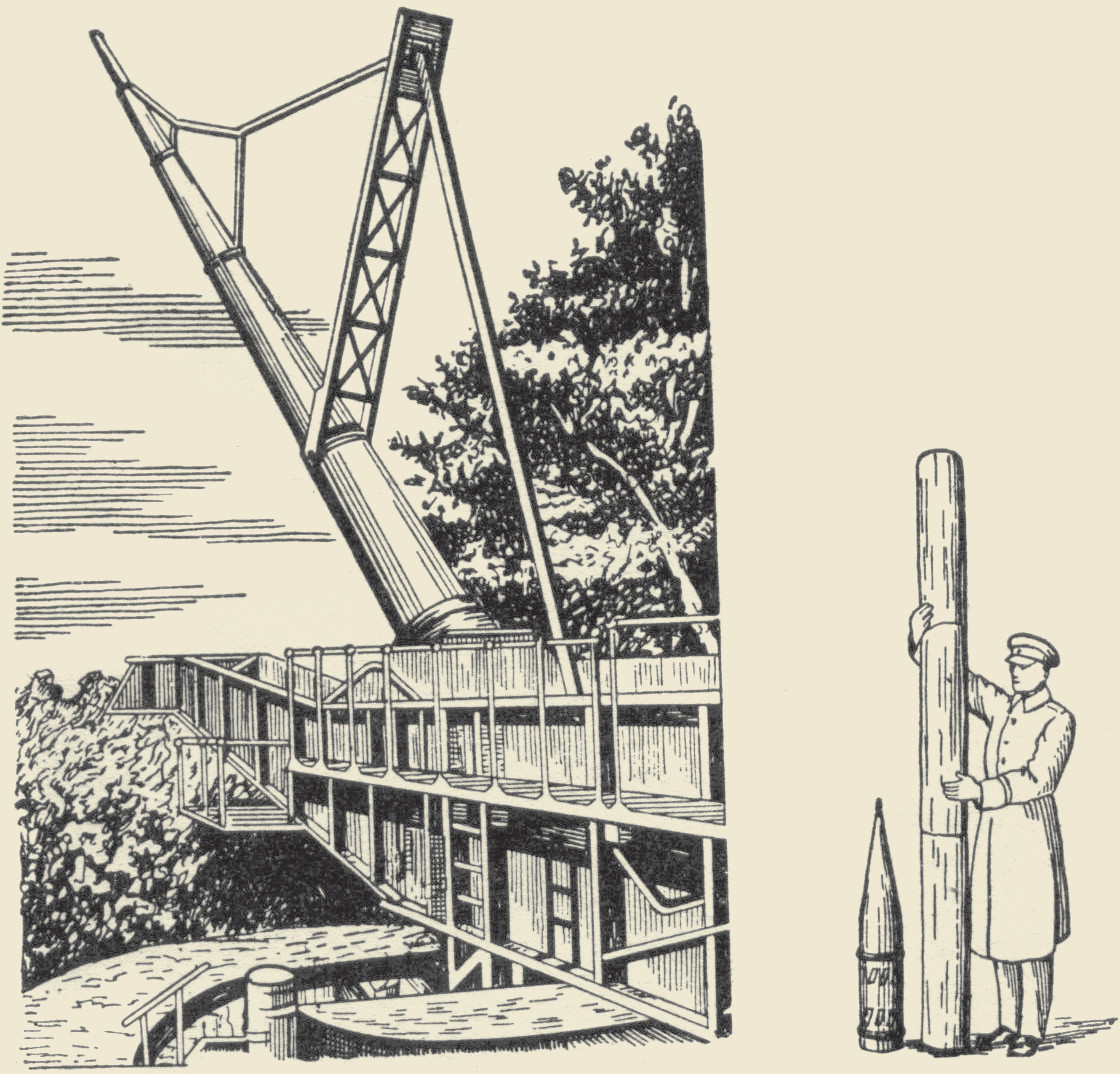 Читатель, наверное, помнит, какую сенсацию произвело в 1917 году известие, что немцы начали систематически обстреливать из тяжёлых орудий французские города, находившиеся от линии фронта не ближе 70 вёрст. Немцам удалось построить орудия, которые бросали снаряды свыше 100 кг (около 6 пудов) весом на расстояние более 80 вёрст. Как потом оказалось, для этого они воспользовались данными о высоте атмосферы и изменении её плотности с высотой. Для снаряда достаточно было достигнуть при начальной скорости в 1400 м/сек высоты в 30 км, чтобы испытывать при дальнейшем полёте ничтожное сопротивление воздуха, который на этой высоте весьма разрежён. Снаряд быстро прорезает плотные нижние слои атмосферы и дальше летит почти в пустоте.