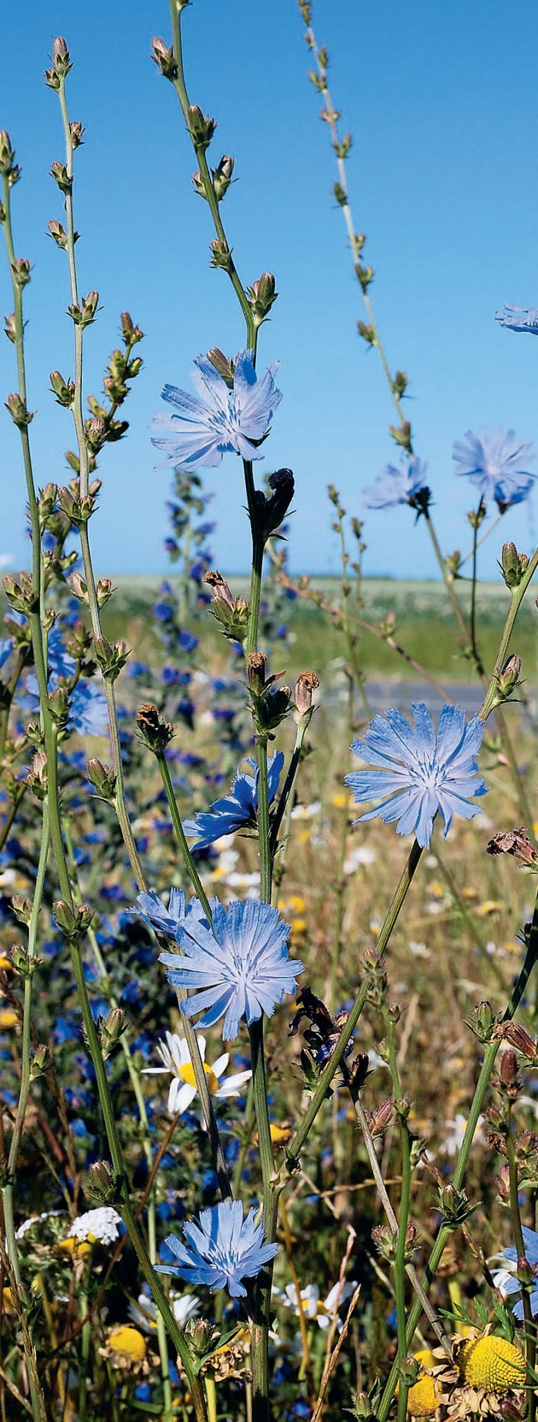 Пригорок желтеет от густых соцветий пижмы и зверобоя, в низинах видны белые вкрапления подмаренника и мяты, а на обочинах дорог — капельки голубой краски, это цветки цикория, неизменного спутника лета! Присмотритесь к картинам наших великих пейзажистов Ивана Шишкина и Исаака Левитана. Вы наверняка найдёте эти растения.