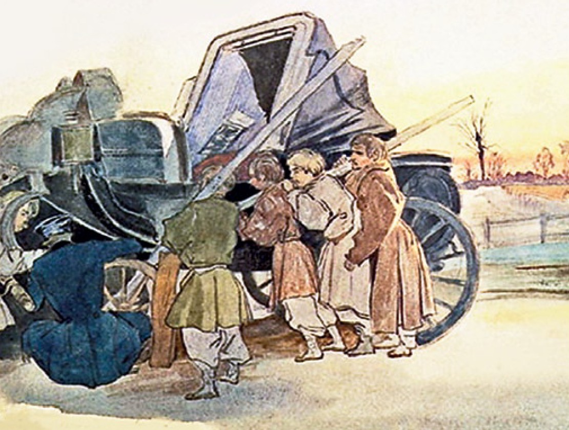 В жизни Гоголя езда по бесконечным дорогам России занимала исключительно большое место. Испытав на своих боках все неприятности такого передвижения, он со знанием дела описывал перемещение своих героев по почтовым трактам и просёлкам в экипажах, которые, как правило, соответствовали их общественному положению.