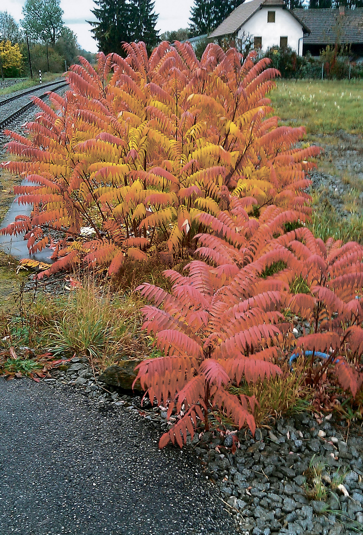 Наибольшей популярностью среди садоводов пользуются зимостойкие виды сумаха американского происхождения. Среди них сумах оленерогий, или пушистый (R. typhina), — невысокое дерево с низкой раскидистой кроной. В средних широтах оно подмерзает, отчего приобретает кустовидную форму и обычно не превышает 3 м высоты. Если взглянуть на него весной, до распускания почек, станет понятно, за что его назвали «оленерогим»: толстые, слабо разветвлённые ветки цветом и фактурой напоминают панты — молодые рога оленя.