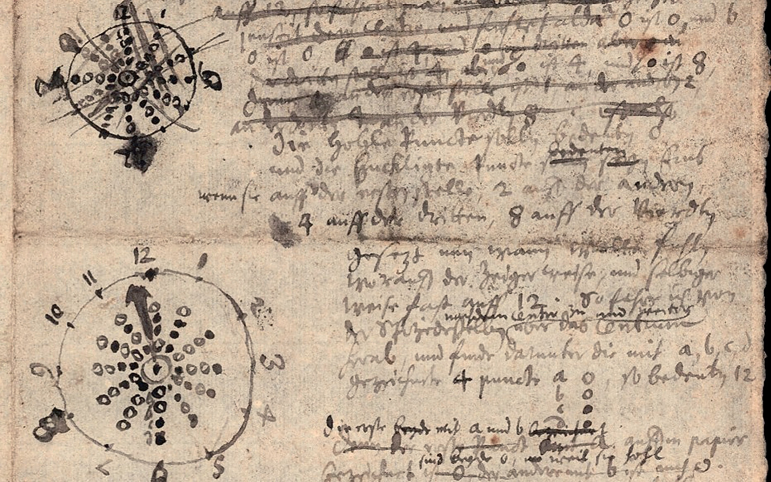 Расшифровкой рукописи занялись сотрудники библиотеки Зигмунд Пробст (Siegmund Probst) и Юлия Векенд (Julia Weckend). Оказалось, что текст и рисунки относятся к часам оригинальной конструкции. Эти часы имеют всего одну стрелку. Между всеми 12-ю числами (1, 2, …, 12) и центром циферблата находится ряд из четырёх «точек», каждая из которых либо полая, либо выпуклая. Любая полая точка соответствует нулю. Выпуклые точки соответствуют цифрам: первая (самая близкая к центру) — единице; вторая — двойке, третья — четвёрке, четвёртая (на периферии циферблата) — восьмёрке.