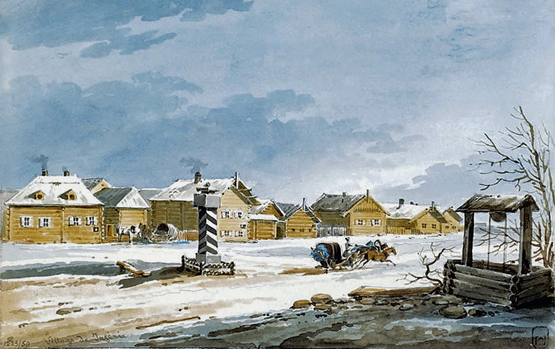 М. Н. Воробьёв. Почтовый тракт зимой. 1830-е годы, Россия. Бумага, акварель. Источник: www.museumpushkin.ru