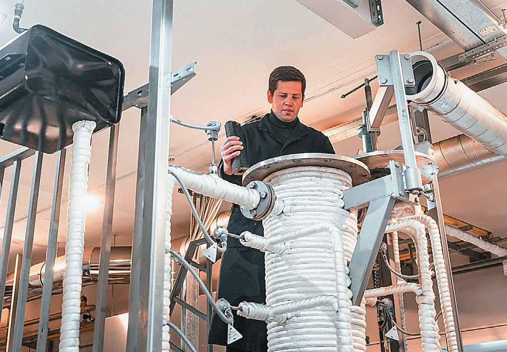 Доцент Научно-образовательного центра И. Н. Бутакова ТПУ Кирилл Ларионов загружает в установку термической конверсии прессованное сырьё для переработки. Фото: ТПУ