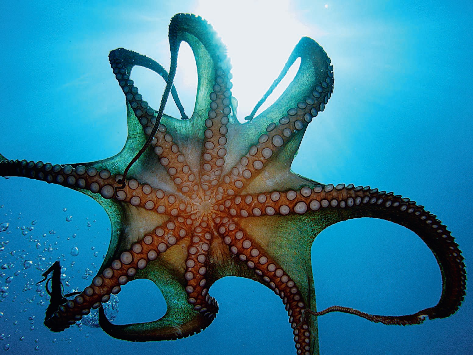 Но жизнь всегда ярче самого эффектного киноблокбастера. Есть на свете существо, которое в точности соответствует данному описанию, — осьминог! Да, именно этот всем известный головоногий моллюск последние несколько лет не даёт спокойно спать учёным-биологам, этологам, генетикам, эволюционистам и нейрофизиологам. Изучая осьминогов — а их в природе насчитывается до 200 видов, — удалось открыть множество нетривиальных фактов, отчего это забавное морское существо называют «самым курьёзным созданием» на нашей планете. Не будет преувеличением утверждать, что даже человек не может считаться столь же внушительным исключением среди приматов, как осьминог, — по сравнению с родственными ему видами.