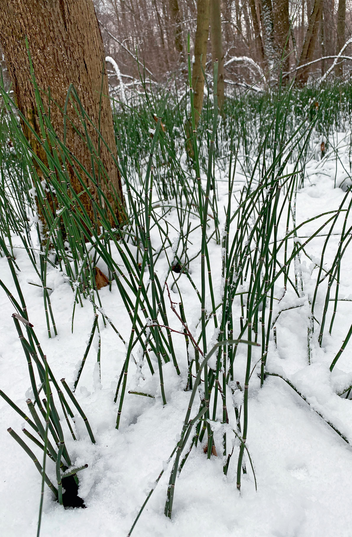 Для начала обсудим, почему зима такое трудное время для деревьев и трав. Основная опасность, как ни странно, — это сухость. Вроде бы воды кругом предостаточно, но она вся замёрзшая — что на поверхности, что в почве. Если продолжать испарять влагу в том же объёме, что и летом, восполнить её не получится, неминуемо засохнешь и погибнешь. А зимой вода испаряется хорошо — вспомните, как быстро сохнет бельё на морозе. Поэтому адаптация растений к зиме во многом направлена на снижение потерь влаги. Листопадные деревья сбрасывают листву и впадают в спячку. Хвойные листву сохраняют, но снижают фотосинтез до минимума, как и испарение. Их хвоинки маленькие, узкие, покрыты толстой кожицей, у многих защищены слоем воска, что особенно заметно на ели голубой, или колючей (Picea pungens).