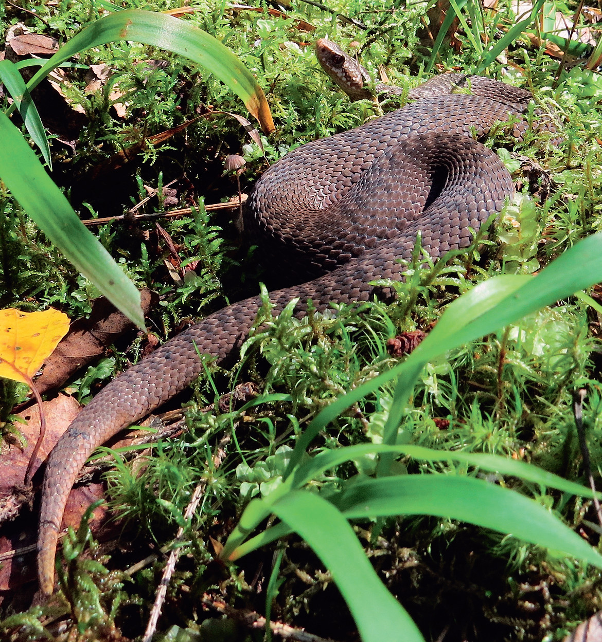 Но положение оставалось щекотливым. Чёрный вертикальный штрих зрачка чётко выделялся на оранжево-красном фоне и, казалось, предупреждал: «Смотри, ещё чуть подвинешь и…». Что будет потом, я догадывался и поэтому очень медленно отвёл нависшую ногу в сторону и аккуратно поставил её рядом с левой.