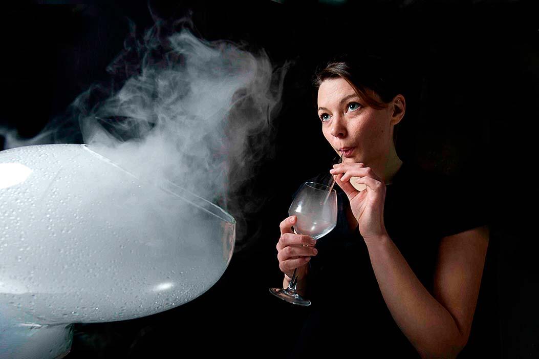 Гарвардский биолог Дэвид Эдвардс известен своими пищевыми инициативами. В 2013 году эксцентричный ученый изобрел технологию Le Whaf. Это специальный аппарат, работающий по принципу большого питательного кальяна: из биологически активного концентрата с аминокислотами он производит пар, а скорее даже съедобный туман из микрочастиц. Это, по словам создателя, первая еда, которую можно вдыхать. Субстанции можно придать любой аромат и вкусовые свойства. Известный шеф-повар Тьерри Маркс создал для прибора целый набор «блюд», включая томатный суп и шоколадный торт. В туман можно превратить и алкоголь.