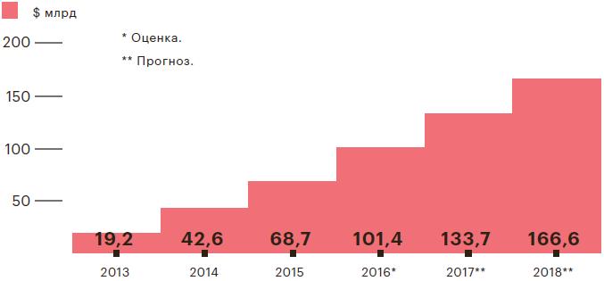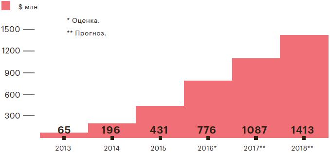 По разным оценкам российский сегмент мобильной рекламы в последние годы растет примерно на 30% в год, что значительно опережает показатели рынка интернет-рекламы в целом (до 15%). По оценке агентства digital-коммуникаций AdWatch, до 40–60% бюджетов отечественного рынка приходится на игры, около трети — на сегмент travel. Западный рынок мобильной рекламы растет еще быстрее — например, крупнейший в мире американский рынок только за 2015 год увеличился сразу на 66%, до $20,7 млрд (данные о динамике расходов на мобильную рекламу в России и мире см. на с. 89–90).