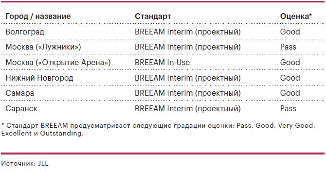 Российские стадионы, сертифицированные по международным экологическим стандартам