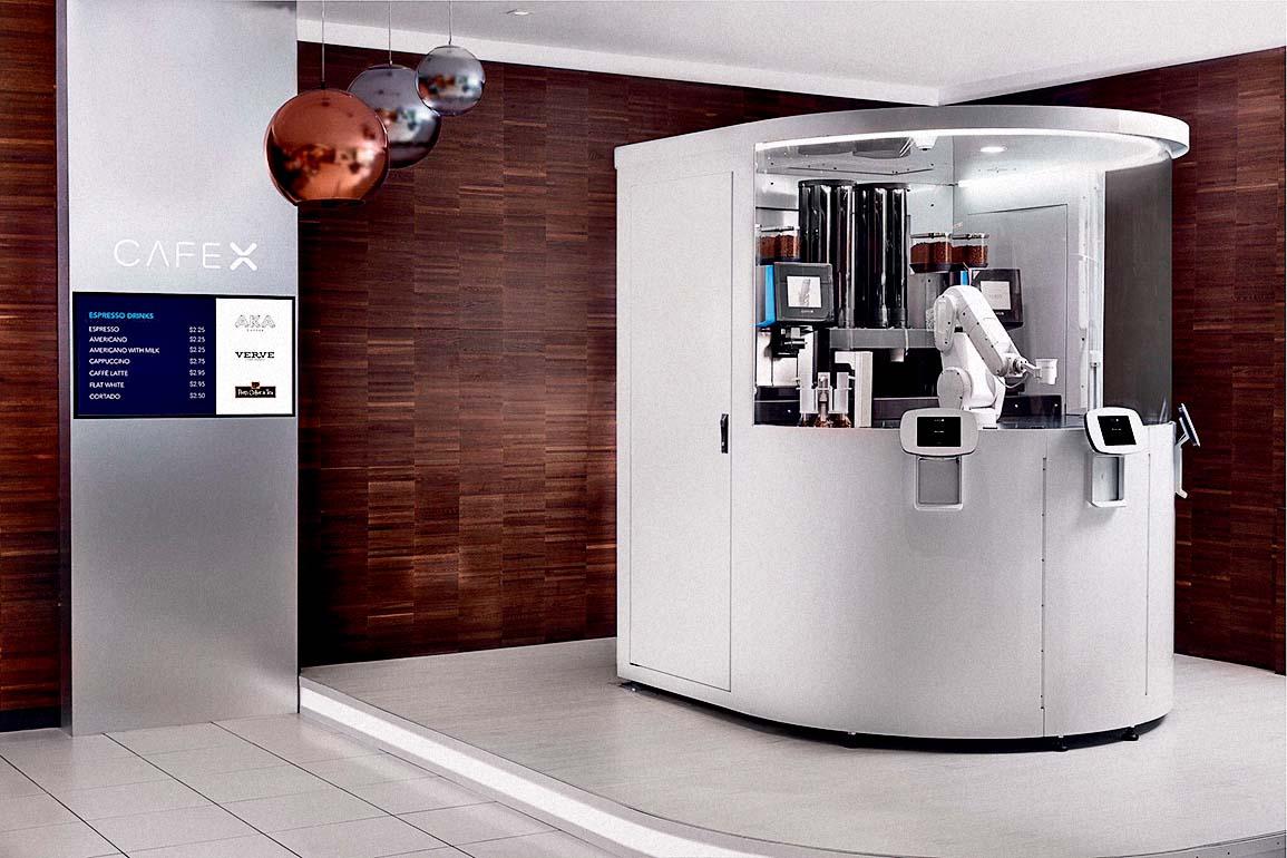 В конце января 2017-го в Сан-Франциско заработала первая в США роботизированная кофейня Cafe X (еще одна есть в Гонконге). Робот-автомат в заведении исполняет функции официанта и баристы — принимает заказ и готовит кофе. Посетитель выбирает вид напитка и дополнительные ингредиенты через планшет у стойки или в мобильном приложении. После чего расположенная за стеклом «рука»-манипулятор готовит и выдает заказ. Робот может одновременно обслуживать несколько клиентов — на обработку запроса уходит 20 секунд. За час Cafe X обслуживает 100–120 человек и за счет экономии на оплате труда выигрывает конкуренцию даже у Starbucks: за 200 г кофе робот просит $2,25 при средней в Сан-Франциско цене $4–5. Кофе, по оценке журнала Wired, получается «чертовски вкусным». С 2014-го стартап привлек $5 млн инвестиций. В феврале 2016-го его основатель Генри Ху получил стипендию от фонда Питера Тиля, которая позволила ему бросить школу и сосредоточиться на бизнесе.