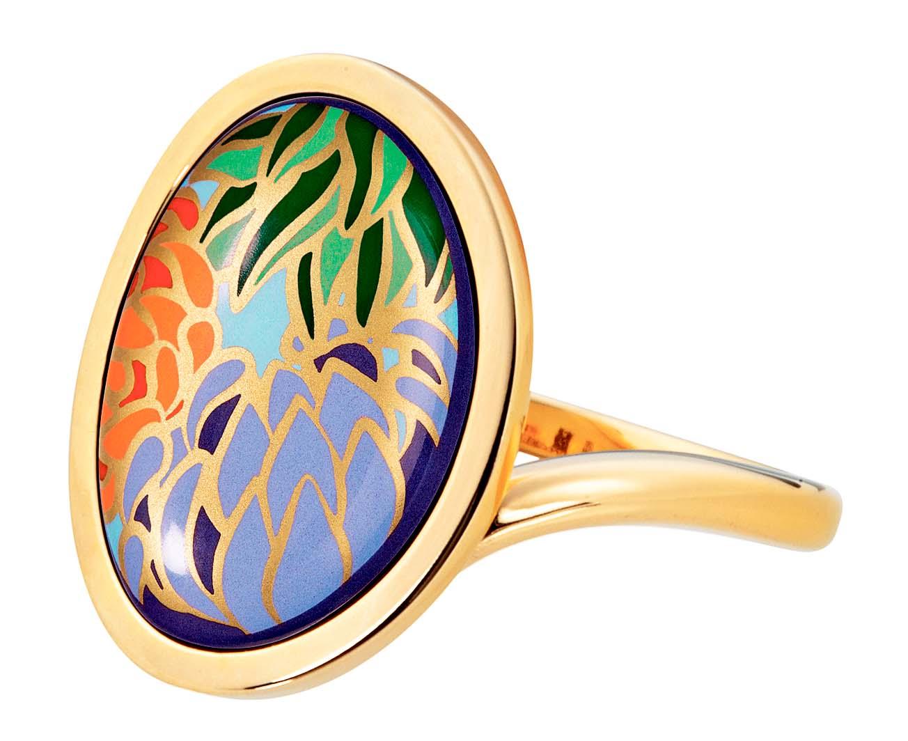 В коллекции «Посвящение Клоду Моне» компания FREYWILLE выпустила новый дизайн «Онфлер» — так называется портовый город в Нормандии, в котором жил и работал знаменитый импрессионист. Мастера австрийской ювелирной фирмы по-своему интерпретируют творчество Моне в технике художественной эмали, выполненной в оттенках «Онфлер аквамарин» и «Онфлер индиго». Кольцо, браслет и кулон, изготовленные из сплава латуни с напылением из 24-каратного золота, украшены пышными бутонами хризантемы, причем каждый лепесток соцветия имеет четко очерченный золотой контур.