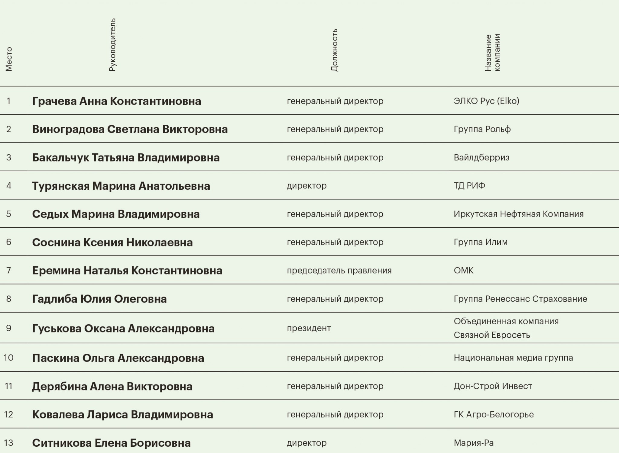 Кто вошел в список наиболее успешных руководительниц компаний российского бизнеса