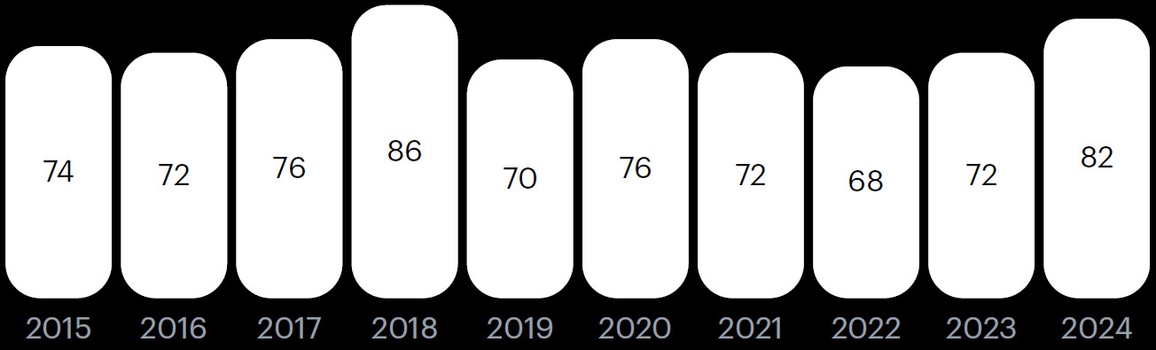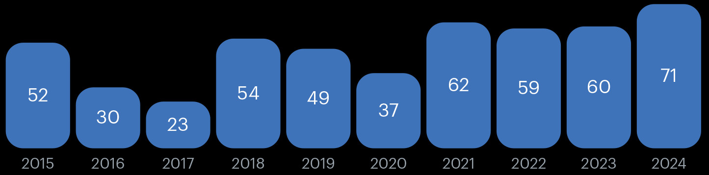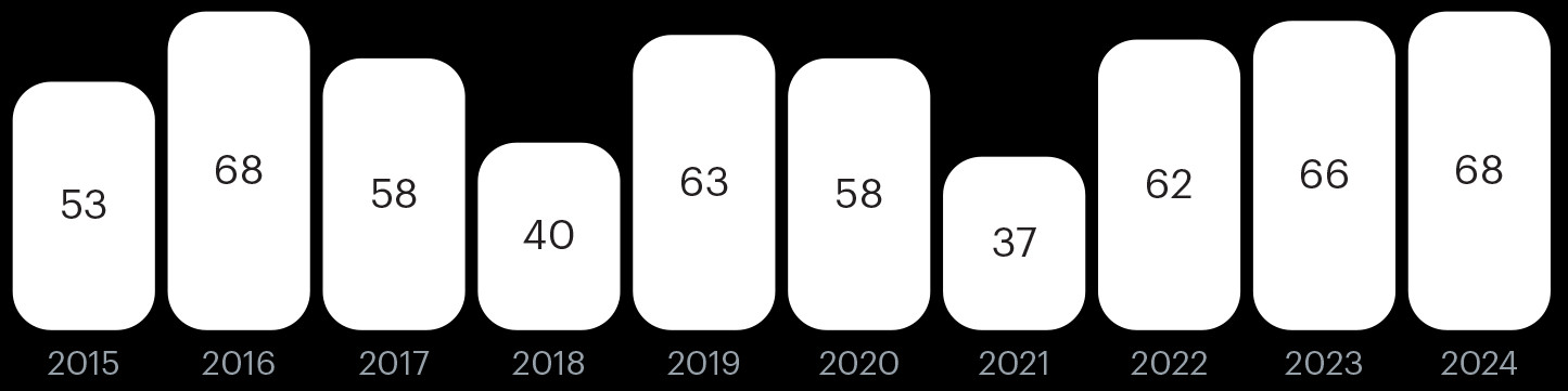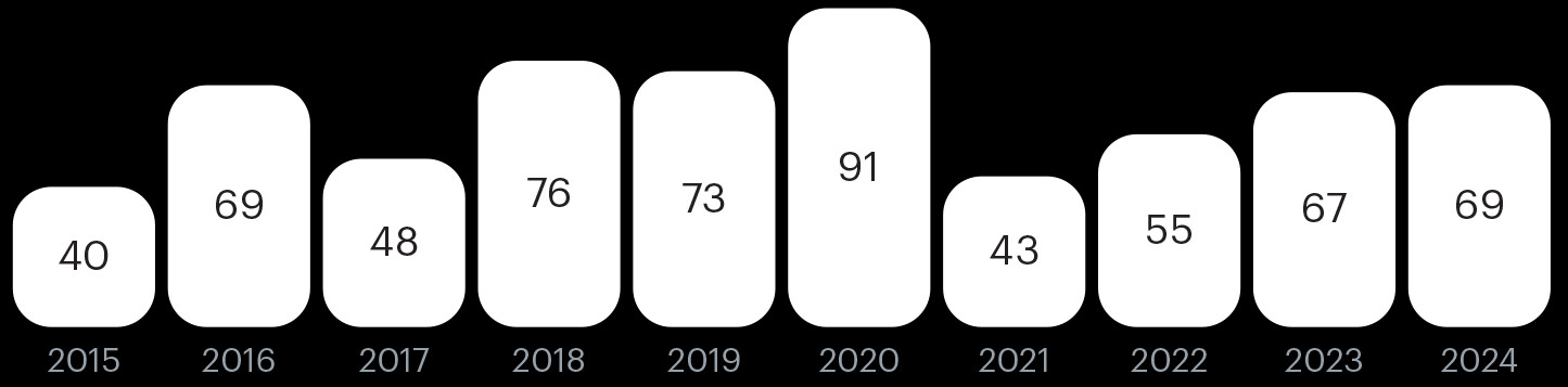 Прежде чем анализировать общие итоги рейтинга, отметим один факт: на удивление большое число компаний показывает значительные и устойчивые темпы роста. Топ-50 самых быстрорастущих нам пришлось выбирать из 770 претендентов, показывавших на протяжении трех лет рост выручки не менее 20% каждый год. И это мы еще выбирали только из тех, чьи продажи в 2023 году были не меньше ₽3,5 млрд, а в 2020 году — больше ₽1 млрд.