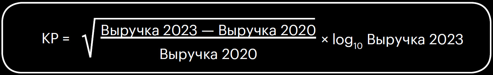 Необходимость введения коэффициента обусловлена разницей в масштабах бизнеса: динамика роста выручки с 1 млрд до 5 млрд руб. и с 10 млрд до 50 млрд руб. должна иметь разный вес.