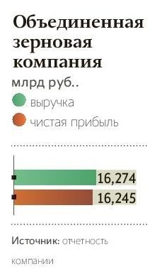 У двух компаний чистая прибыль сопоставима с выручкой или даже большее ее. Правда, в случае СМП Банка (№293) правильнее говорить о сравнении с операционными доходами. В 2014 году банк получил убыток из-за обесценения и создания резервов в связи с санацией проблемных банков. В 2015 году прибыль СМП — 40,8 млрд руб. — связана с доходом от средств, полученных от АСВ (40,1 млрд руб.) на ту же санацию. Процентные и комиссионные доходы группы СМП Банка были меньше — около 32 млрд руб. Чистая прибыль государственной Объединенной зерновой компании (№495) всего на 29 млн руб. меньше ее выручки, при этом 9/10 прибыли — результат переоценки акций зернового терминала ПАО «Новороссийский комбинат хлебопродуктов» (НКХП) по рыночной стоимости. В 2015 году экспорт зерна через НКХП составил более 3 млн т (около 10% от всего объема экспорта).