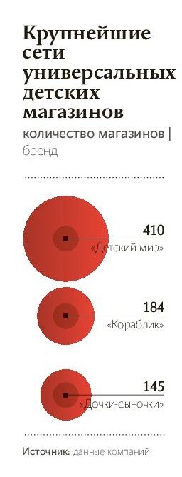 «Детский мир» и «Кораблик» — это магазины абсолютно разных весовых категорий, говорит президент Ассоциации индустрии детских товаров (АИДТ) Антонина Цицулина. По ее словам, «Кораблик» находится во втором эшелоне специализированных детских магазинов. Там после закрытия магазинов ГК «Дети» (сети «Дети» и «Здоровый малыш») остались два сопоставимых игрока — «Кораблик» и «Дочки-сыночки» (145 магазинов по России), уточняет Цицулина.