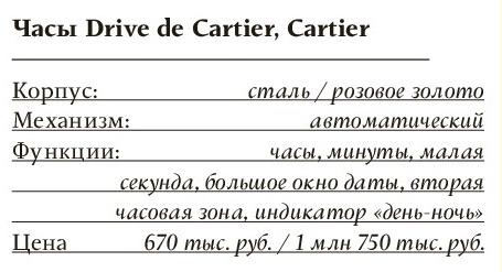 В часовом мире дом Cartier считается признанным мастером не только сложного механического содержания, но и идеальной внешней формы. За свою историю часовой дом разработал не один десяток фирменных корпусов — от «танка» и изогнутого силуэта Crush до современных Ballon Bleu и Cle de Cartier. Любую форму Cartier отличают простота и универсальность, архитектура изгибов и лаконичный дизайн. Похоже, именно в этом сочетании и есть секрет гармонии. Новой коллекции Drive de Cartier, представленной в начале 2016 года в Женеве, эта гармония тоже присуща: почти классические мужские часы — в меру спортивные и деловые, в меру сдержанные и непринужденные — наделены особым «мужским» характером. Корпус в форме подушки изготовлен из стали или розового золота, облик циферблата отдаленно напоминает приборную доску олдтаймеров, а заводная коронка похожа на болт с сапфировой головкой, прикрученный гайкой.