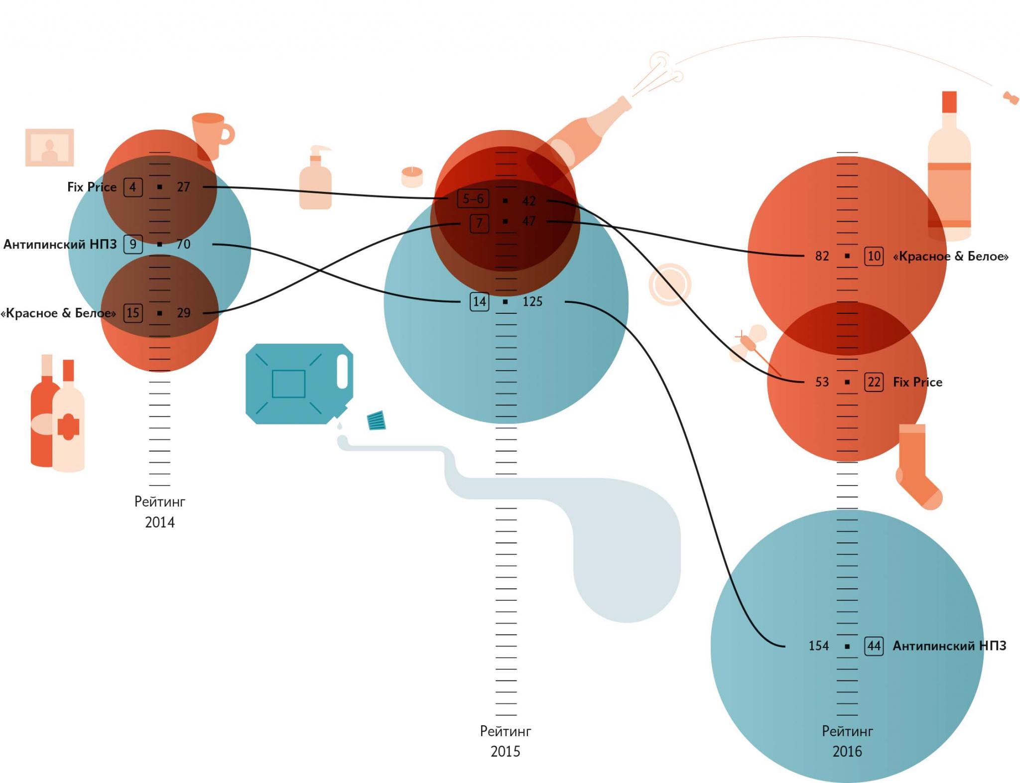7. Попасть в рейтинг быстрорастущих компаний, который мы публикуем третий год подряд, гораздо проще, чем задержаться в нем. Лишь трем фирмам удалось отметиться во всех трех рейтингах: сети дискаунтеров Fix Price, алкогольному ретейлеру «Красное & белое» и Антипинскому НПЗ. 8. Как и в прошлом году, состав рейтинга обновился примерно на 75%: 38 компаний из 50 вошли в топ самых быстрорастущих впервые, годом ранее новобранцами стали 37 из 50.Чемпион прошлого года, «ТМХ-Сервис», опустился на восемь позиций. Самым неожиданным новичком этого года оказался, пожалуй, футбольный клуб «Спартак» Леонида Федуна: среднегодовой темп роста компании составил почти 60%.