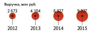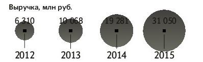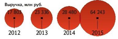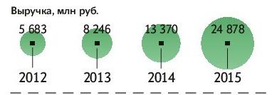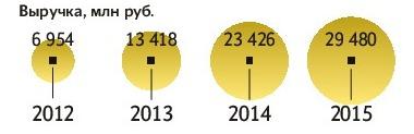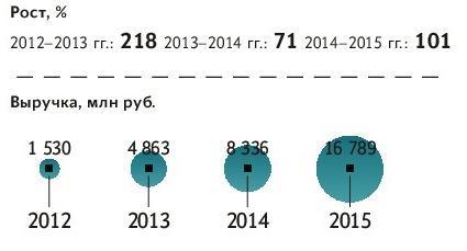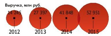 1. Совокупная выручка участников рейтинга по итогам 2015 года достигла почти 1,5 трлн руб. Это почти на 44% меньше совокупного дохода прошлогоднего топ-50: тогда выручка лидеров роста составляла около 2,6 трлн руб. (за 2014 год). Более того, 1,5 трлн руб. от 50 компаний почти сопоставимы с выручкой одной корпорации РЖД (1,9 трлн руб. за 2015 год) и составляют лишь четверть выручки самой крупной компании России «Газпром».