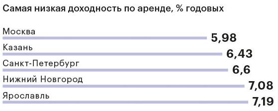 Но собственник квартиры в Москве заработает на ее аренде всего 5,98% годовых, а в Кемерово — более 9%.