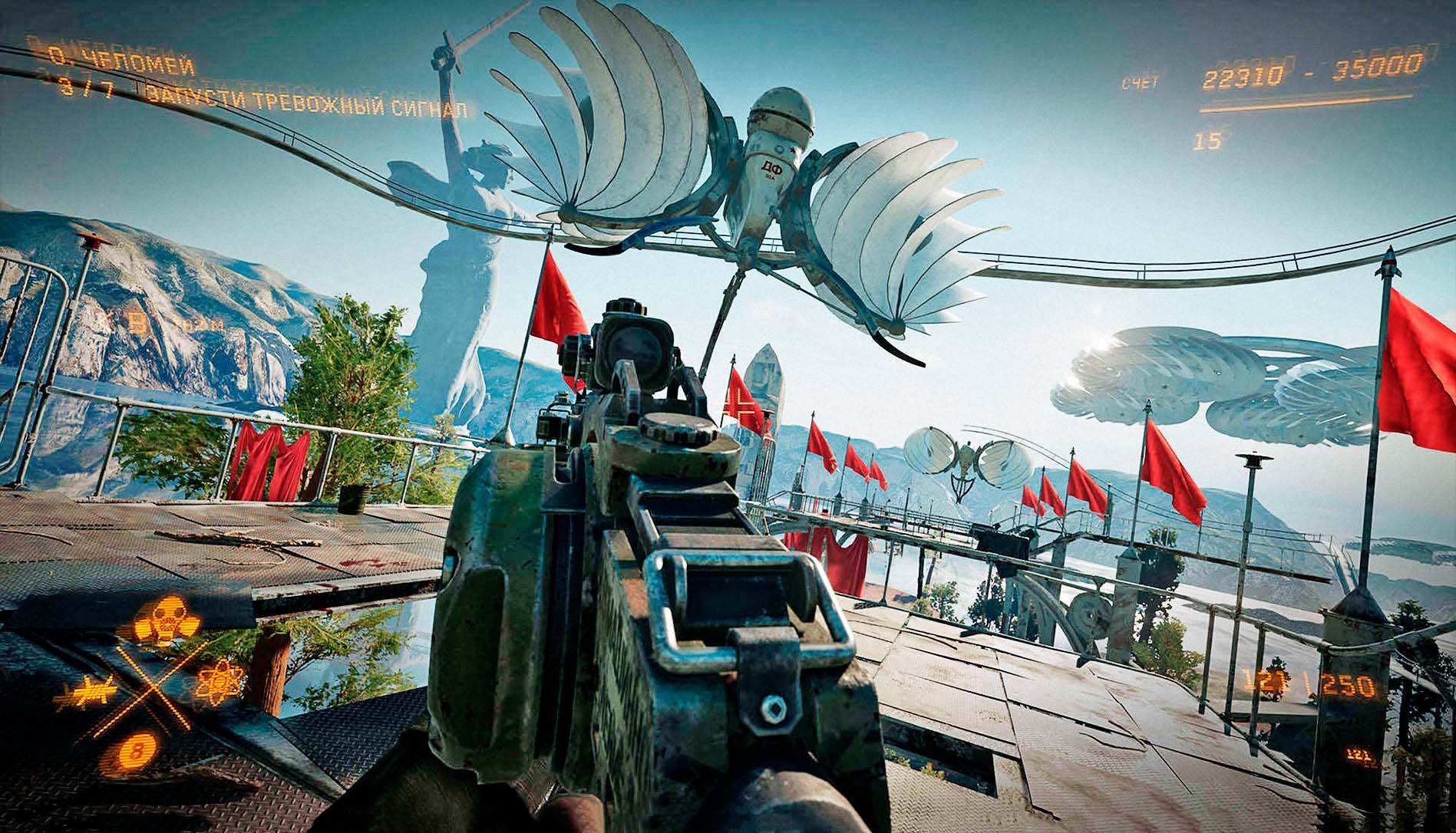 В трейлере — альтернативная история СССР: 1930-е годы, страна переживает техническую революцию, которая сопровождается повальной роботизацией. Всюду советская эстетика: плакаты вроде «Мирный атом — сердце робота!», ковры-дорожки, чайный сервиз в горошек, саундтреком идет танго «Утомленное солнце», и на словах «расстаемся, я не стану злиться, виноваты в этом ты и я» герой трейлера протыкает зомби чем-то вроде арматуры.
