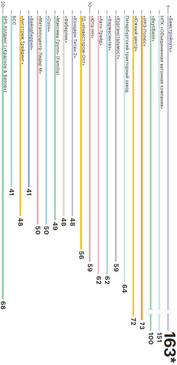 Крупнейший вагоностроительный холдинг России второй год подряд берет «серебро» рейтинга. В 2016-м ОВК на треть, почти до 16 тыс. вагонов, нарастила объем производства по сравнению с предыдущим годом и рассчитывает довести показатель до 20 тыс. в 2017-м. Парк вагонов под управлением и в собственности компании составляет 14,3 тыс. единиц. Главное предприятие холдинга — Тихвинский вагоностроительный завод.