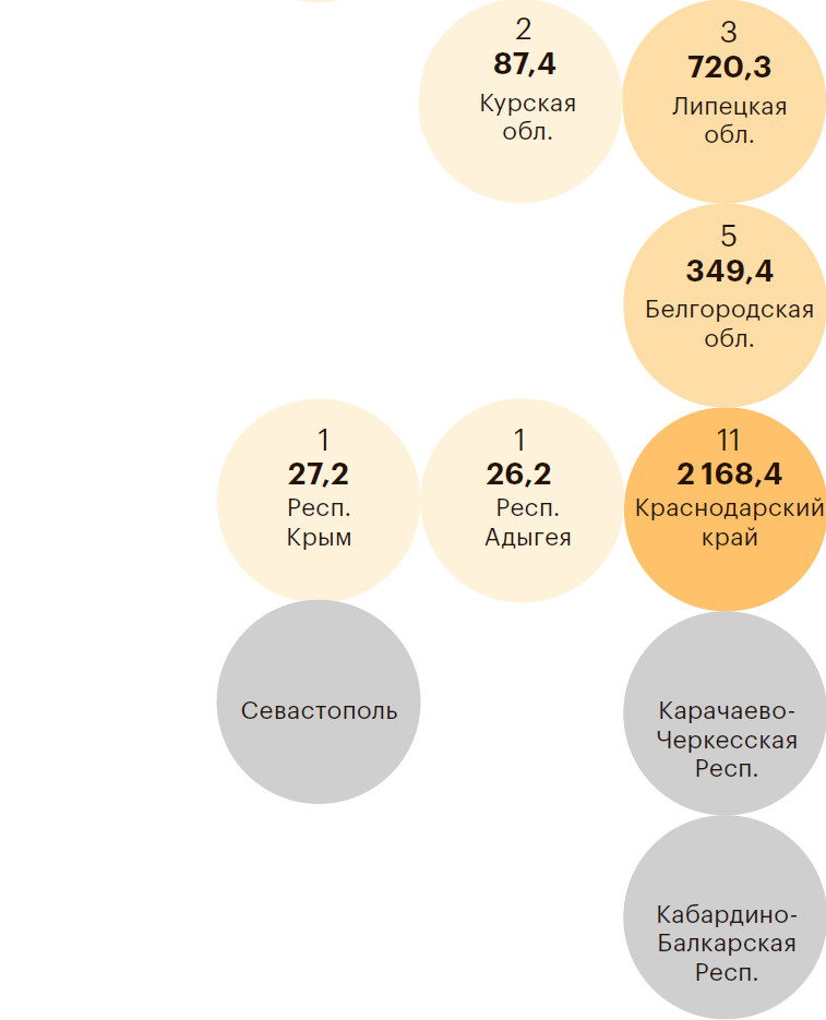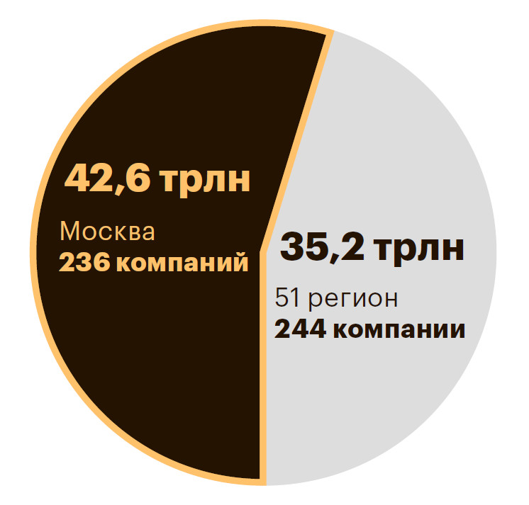 Приведенное распределение выручки достаточно условно. Крупнейшие компании действуют обычно в нескольких или даже во всех регионах России, а также за рубежом. Такое распределение — это скорее проекция по территориальной принадлежности головной компании, которая консолидирует прибыль группы. Место регистрации головной компании определялось по коду причины постановки на налоговый учет (КПП). Некоторые участники рейтинга имеют зарубежную регистрацию. В этом случае мы указывали страну регистрации головной компании группы.