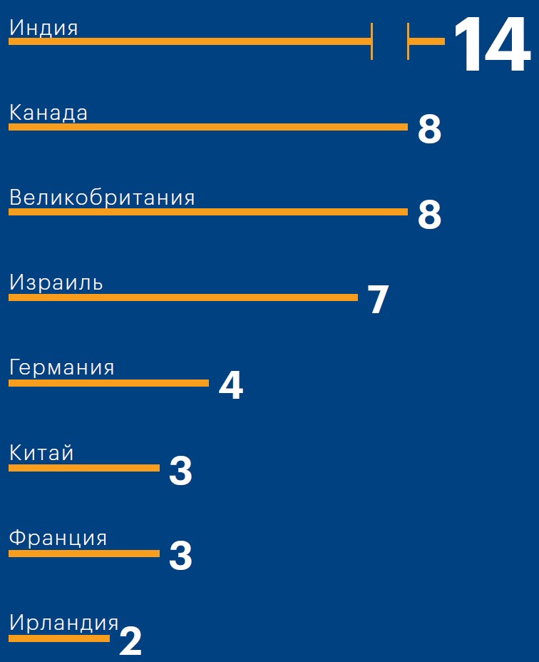 Страны происхождения основателей «единорогов»