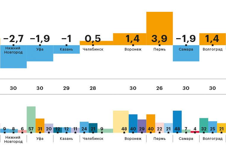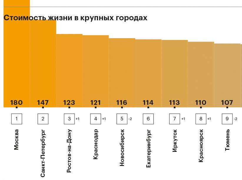 За прошедший квартал 2017 года в индексе вновь произошли изменения. На этот раз в тройку самых дорогих для жизни городов вошел Ростов-на-Дону, сместив с третьего места вырвавшийся в прошлый раз Новосибирск. Статус самого подорожавшего города страны по итогам нашего мониторинга в этот раз у Воронежа перехватила Пермь: за апрель—июнь 2017-го инфляция по корзине составила почти 4%.