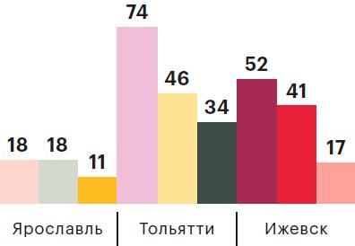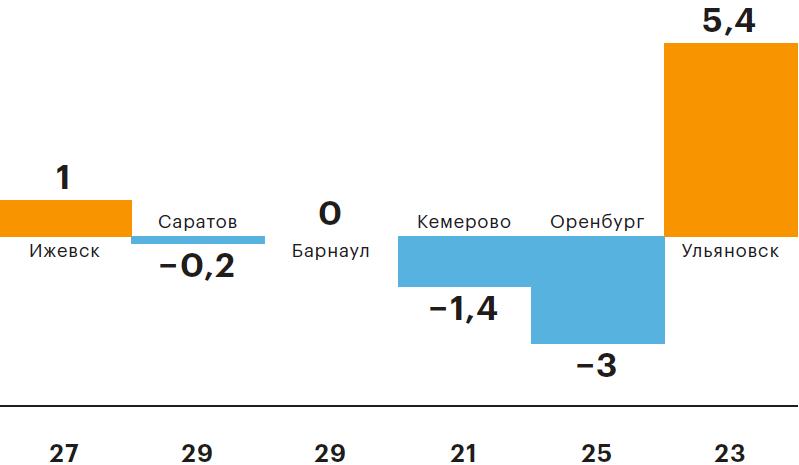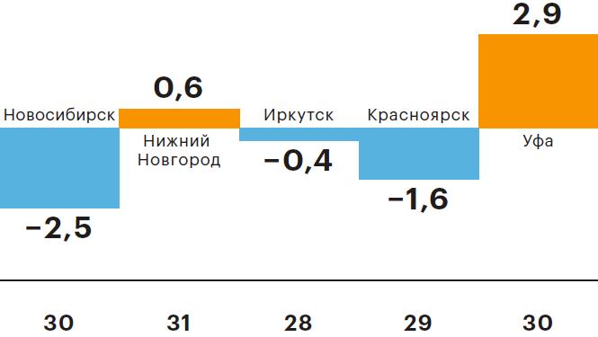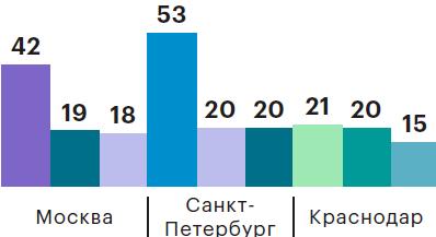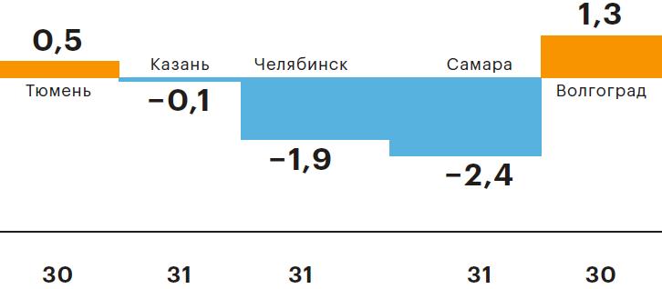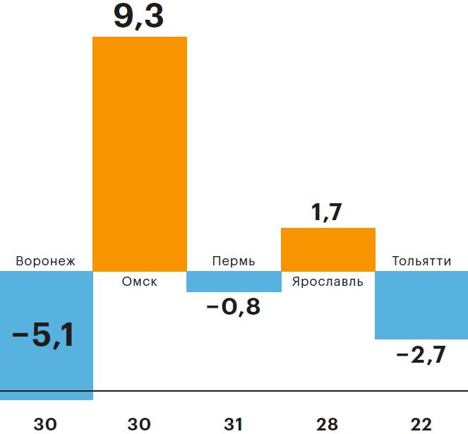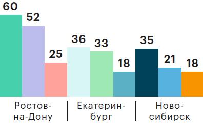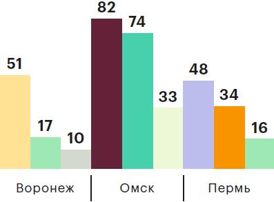 В половине городов, которые мы исследуем, стоимость «набора» по итогам квартала снизилась. Рекордсменом по снижению цен оказался Воронеж с показателем более 5%. Отчасти это объясняется аномальным для города скачком стоимости корзины кварталом ранее: именно этот населенный пункт весной оказался самым подорожавшим за период.