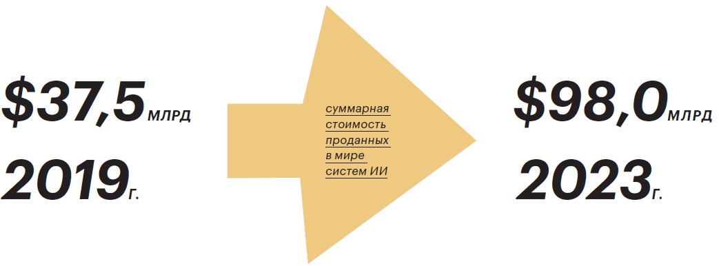 Искусственный интеллект — одна из ключевых технологий четвертой промышленной революции. Как ранее прогнозировал в интервью РБК экс-президент Google China Ли Кайфу, в ближайшее десятилетие ИИ превратится в новое электричество — он будет применяться повсюду. По данным исследовательской компании IDC, уже в 2023 году суммарная стоимость проданных в мире систем ИИ достигнет $98 млрд (по сравнению с $37,5 млрд в 2019-м). Основными покупателями таких систем станут ретейл и банковский сектор.