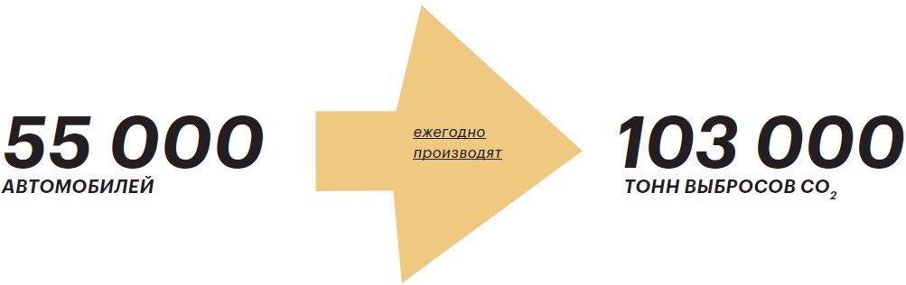 - прямые выбросы, например от двигателей внутреннего сгорания автомобилей: 100 ТЫС. Т