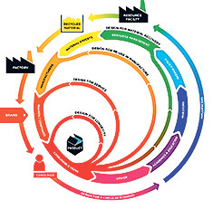 Тренды можно визуализировать в виде точек, расставленных хаотично, а затем соединить линиями схожие по тематике микроизменения и объединить в макротренд. Например, тотальную прозрачность информации и репутационный менеджмент можно объединить в тренд, который Анна-Лиз назвала «Радикальная открытость».