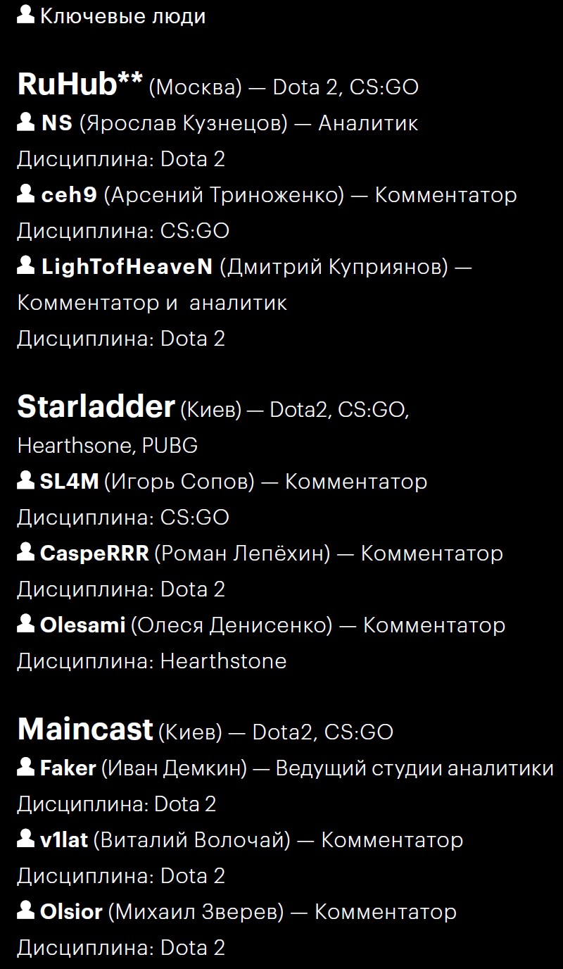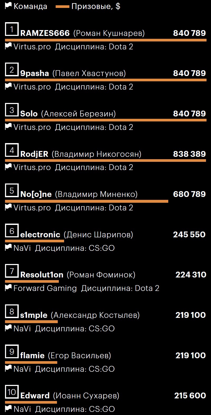 Источники: liquipedia.net, www.esportsearnings.com, данные компаний