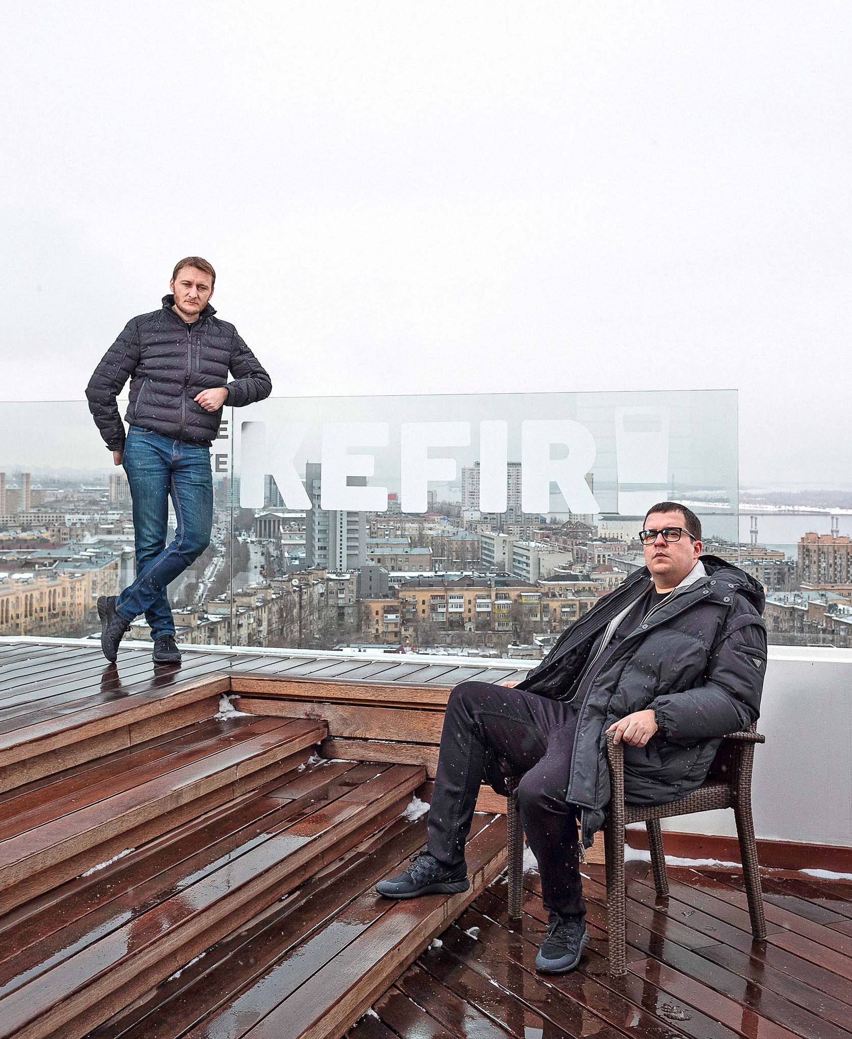 Встречаться в офисе «Кефира» в центре Волгограда Пряхин не захотел: «Страшный… стыдно показывать». Недавно компания купила за 260 млн руб. новое здание площадью 4,2 тыс кв. м., тоже в центре, и вот-вот должна переехать. Интервью проходит в лофте на 22-м этаже в одной из новостроек. «Купили это место только ради веранды», — говорит Пряхин. На веранде сотрудники «Кефира» собираются летом, чтобы поработать с видом на город или провести вечеринку. Открытую площадку заполняют несколько столов и кресел, рядом — джакузи. Иногда гости компании останавливаются в лофте вместо гостиницы: в помещении есть кровать, небольшая кухня, камин.