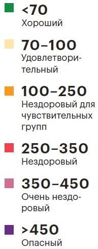 Уровни концентрации частиц PM 2,5 в воздухе, мкг/куб. м
