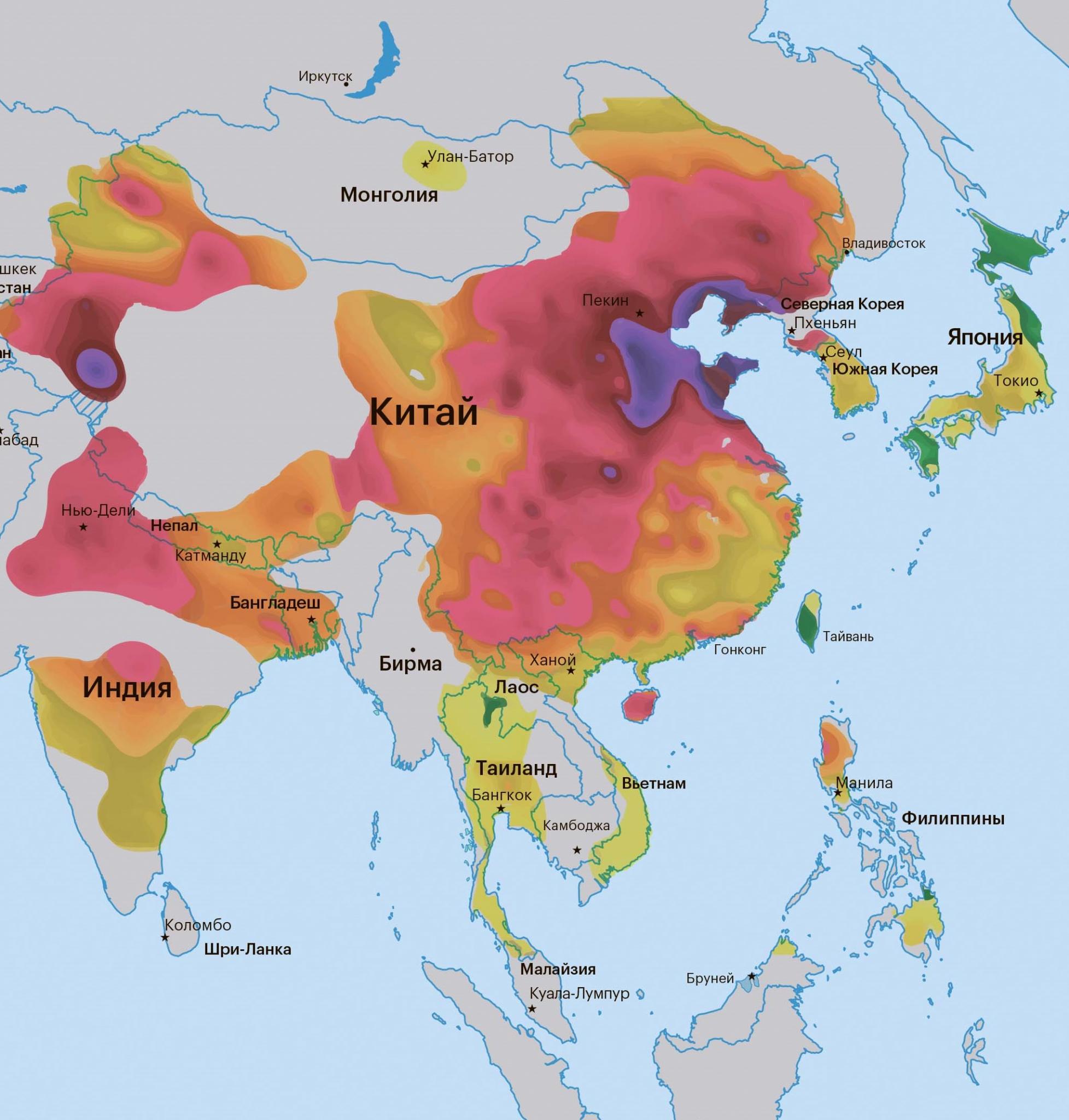 Загрязнение воздуха мелкодисперсной пылью в Китае и соседних регионах