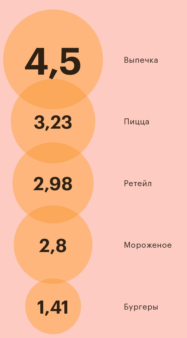 Дерзкая стратегия сработала: российский BK не первый год растет опережающими темпами и в 2017-м был признан лучшим мастер-франчайзи в мире. В 2018 году выручка сети более чем из 500 ресторанов подскочила на 35% (около 29 млрд руб.), а чистая прибыль — в девять раз (0,9 млрд руб.). По оценке Euromonitor International, у BK уже более 10% рынка фастфуда (его объем оценивается в 500 млрд руб.), отставание от McDonald’s — менее 8%.