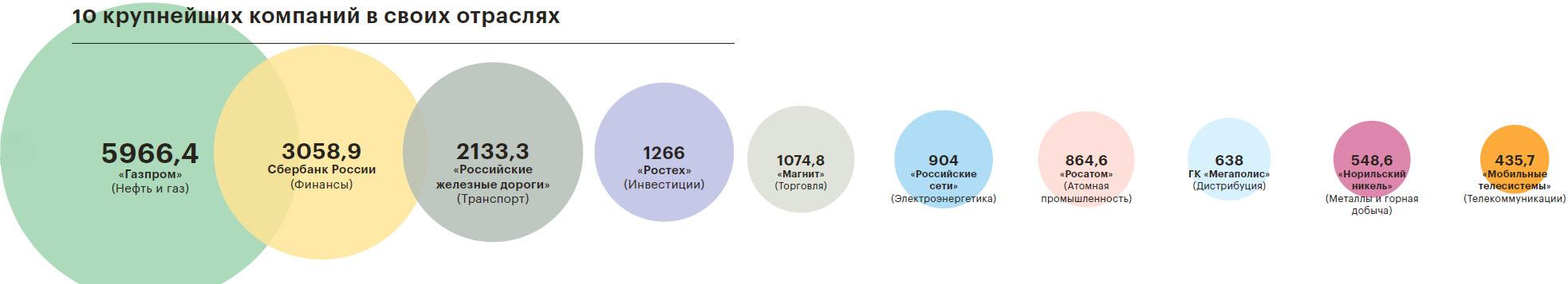 Компании из нефтегазовой отрасли продолжают формировать значительную часть совокупной выручки всех участников РБК 500, несмотря на то что доля представителей сектора не превышает 10% в общей численности. Впрочем, диспропорция наблюдается во всем: почти треть отраслей, представленных в рейтинге, приносит более 90% совокупной выручки участников. Отраслевая карта бизнеса на стр. 74